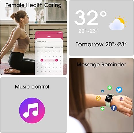Special Feature E-mail/Text Messaging/Call/SNS Notification, Calendar, Reminders, Reject calls Function, Sedentary Alert, 41mm Display, Built-in Dials, Customized Watch Face, Brightness Settings, Multiple Sport Modes, Raise to wake, 5ATM Waterproof, Timer, Stopwatch, Music Control, Alarm Clock, Activity Tracker, Sleep Monitor, Heart Rate Monitor, Pedometer, SpO2, Calorie Tracker, Multisport Tracker, Fitness Tracker, Distance Tracker, Time Display