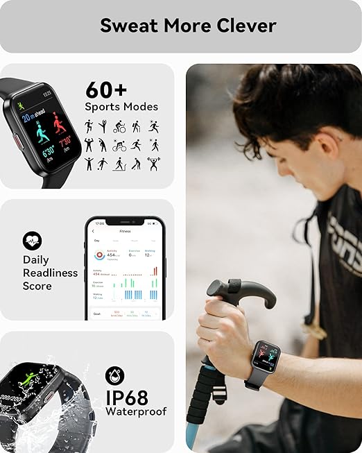 • 【100 Sports Modes and 5ATM Water Resistance】With 100 built-in Sport modes and 5ATM water resistance, smart watches for women meets most sports enthusiasts` needs. Fitness tracker for women and men provides fitness data, including calories, steps, distance, and workout time, generate fitness report after a workout