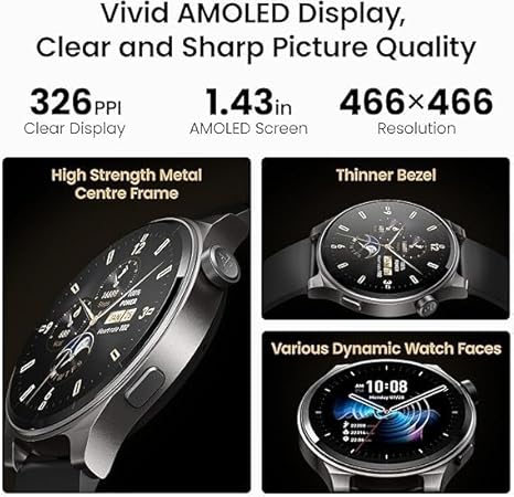 • TOZO S5 Smart Watch (Answer/Make Calls), 1.43’’ AMOLED Smart Watches for Men Women 100+ Sport Modes Fitness Watch with Blood Oxygen/Sleep/Heart Rate Monitor, IP68 Waterproof Smartwatch