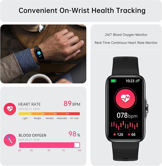 - Real-Time Continuous Heart Rate: Adopt the latest sensor technology to track your heart rate all the time and directly display real time changes in heart rate on the smartwatch. Stay informed about your body's changes more quickly and timely with the Sunorshop fitness tracker.